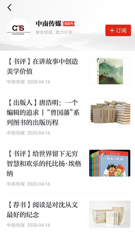 此次上線的“中南傳媒強國號”,將全方位、立體化、多角度展現中南傳媒在習近平新時代中國特色社會主義思想指導下的生動實踐,通過圖書、文字(書評、書薦)、視頻(作者訪談)、音頻(有聲書)等內容的每日更新,宣傳推薦中南傳媒優質多元的資源產品,展現“催生創造,致力分享”的企業使命與擔當。相關內容除在中南傳媒強國號呈現外,“學習強國”學習平臺也將遴選優質內容資源,及時推送到讀書頻道,向外界展示中南傳媒作為華文全媒介內容運營商、信息服務和綜合傳播解決方案提供商、重要文化產業戰略投資者的強大實力。